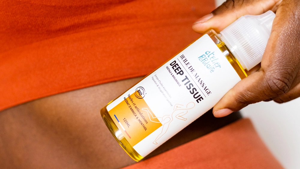 - L’huile de massage deep tissue est parfaite pour la récupération des sportifs grâce à sa composition riche en actifs végétaux. L’association du macérat d’arnica, du menthol et de la synergie d’huiles essentielles (gaulthérie couchée, romarin camphré, lavandin super) permet de cibler les tensions musculaires et apporte un effet rafraîchissant et anesthésiant.