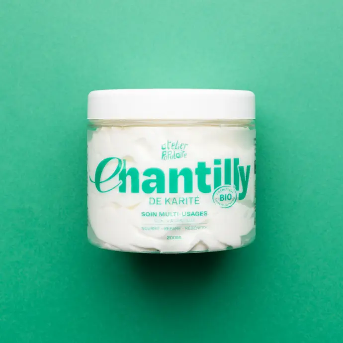 Imaginez une texture aussi aérienne qu'un dessert, mais dotée d'un pouvoir nutritif exceptionnel. Chez Atelier Populaire, nous avons transformé le traditionnel beurre de karité en une Chantilly onctueuse et fondante, battue avec soin dans notre manufacture parisienne créant ainsi un baume miraculeux.